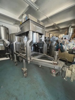 Moinho desintegrador calibrador fabricado pela BACHILLER em aço inoxidável, modelo MDCB 300. Equipamento para desintegração de produtos aglomerados, unificação de partículas para granéis sólidos e granulação de produtos úmidos. Produções de 50 a 5.000 Kg/h.